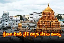 తిరుమల శ్రీవారి వీఐపీ బ్రేక్‌ దర్శన వేళల్లో తాజాగా చేసిన మార్పులు శనివారం అమల్లోకి వచ్చాయి. గత ప్రభుత్వం నుంచి నెలకొన్న గందరగోళాన్ని తొలగించే క్రమంలో ప్రస్తుత పాలకమండలి ప్రయోగాత్మకంగా ఈ మార్పులు చేపట్టింది. గతంలో గురు/శుక్రవారాల్లో ఉదయం 7.30 గంటల నుంచి మిగిలిన రోజుల్లో 8.30 నుంచి మొదలుపెట్టి మధ్యాహ్నం 1.30 గంటలు దాటినా వరుసగా బ్రేక్‌ దర్శనాలు, శ్రీవాణి, దాతలు, ఉద్యోగుల దర్శనాలు కొనసాగేవి. దీంతో ఉదయం క్యూలైన్‌లోకి వచ్చిన సర్వదర్శనం, రూ.300 ఎస్‌ఈడీ భక్తులు ఇబ్బంది పడేవారు. దీంతో తితిదే పాలకమండలి పలు మార్పులు చేపట్టింది. మే ఒకటో తేదీ నుంచి నూతన వేళలు అమలు చేయాల్సి ఉన్నా గురువారం తిరుప్పావడ సేవ, శుక్రవారం అభిషేకం నేపథ్యంలో యథావిధిగా కొనసాగించారు.