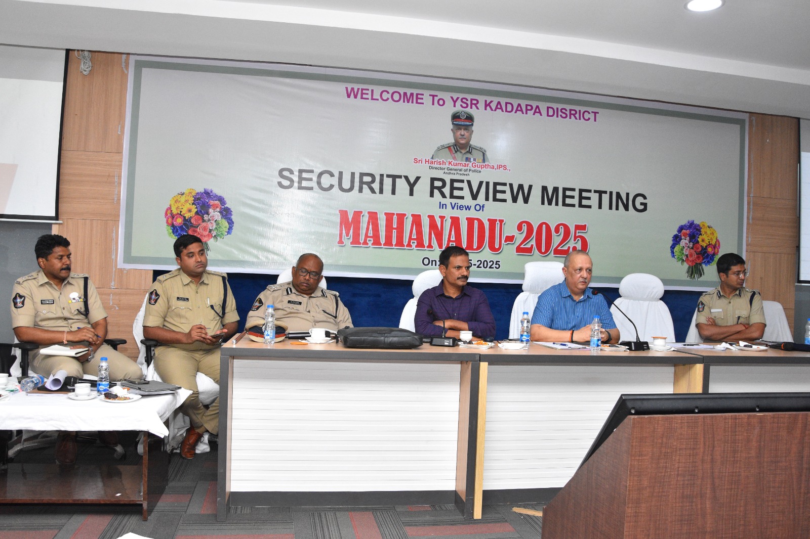 కడప మే 24: ఈ నెల 27, 28, 29 తేదీలలో జరగనున్న ‘మహానాడు’ సందర్బంగా పటిష్ట బందోబస్తు ఏర్పాట్లు చేయాలని రాష్ట్ర డీ.జీ.పీ శ్రీ హరీష్ కుమార్ గుప్తా పోలీస్ అధికారులను ఆదేశించారు. శనివారం జిల్లా పోలీస్ కార్యాలయంలోని పెన్నార్ పోలీస్ కాన్ఫరెన్స్ హాలులో పోలీస్ అధికారులతో సమీక్షా సమావేశం నిర్వహించారు. ఈ సందర్బంగా రాష్ట్ర డీ.జీ.పీ హరీష్ కుమార్ గుప్తా పలు అంశాలపై పోలీస్ అధికారులకు దిశానిర్దేశం చేశారు. ‘మహానాడు’ కు పలువురు వి.వి.ఐ.పి లు, వి.ఐ.పి లు, పెద్ద ఎత్తున ప్రజలు   రానున్న నేపథ్యంలో ట్రాఫిక్ పరంగా ఎటువంటి అవాంతరాలు లేకుండా తీసుకోవాల్సిన జాగ్రత్తలపై, పార్కింగ్ ఏర్పాట్లపై పలు సూచనలు చేశారు. సామాన్య ప్రజలకు ఇబ్బందులు లేకుండా ట్రాఫిక్ ను ఇతర ప్రత్యామ్నాయ మార్గాల  ద్వారా వెళ్లేలా మళ్లించాలని ఆదేశించారు.  పకడ్బందీగా రూట్ బందోబస్తు ఏర్పాటు చేయాలని ఆదేశించారు.  పోలీస్  అధికారులకు కేటాయించిన విధులను అప్రమత్తంగా ఉంటూ నిర్వర్తించాలన్నారు.  సమావేశంలో అడిషనల్ డి.జి (లా అండ్ ఆర్డర్)  ఎన్.మధుసూదన్ రెడ్డి ఐ.పి.ఎస్ , కర్నూలు రేంజ్ డి.ఐ.జి  డా.కోయ ప్రవీణ్, అనంతపురము రేంజ్ డి.ఐ.జి డా.షెముషి బాజ్ పేయి, కడప జిల్లా ఎస్.పి శ్రీ ఇ.జి అశోక్ కుమార్, కర్నూలు జిల్లా ఎస్.పి శ్రీ విక్రాంత్ పాటిల్ , అన్నమయ్య జిల్లా ఎస్.పి శ్రీ వి.విద్యాసాగర్ నాయుడు, నంద్యాల జిల్లా ఎస్.పి శ్రీ అధిరాజ్ సింగ్ రాణా, అనంతపురం జిల్లా ఎస్.పి శ్రీ పి.జగదీశ్, గుంతకల్ రైల్వే ఎస్.పి శ్రీ రాహుల్ మీనా, అదనపు ఎస్.పి (అడ్మిన్) కె.ప్రకాష్ బాబు గారు తదితర పోలీసు ఉన్నతాధికారులు,  సిబ్బంది పాల్గొన్నారు.