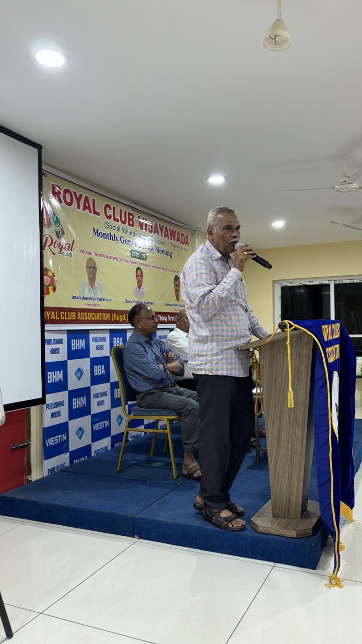 రాయల్ క్లబ్ సేవలు విస్తరించడానికి సభ్యులంతా ఐక్యంగా పని చేయాలని ఇమడాబత్తుల నరహరి కోరారు. వెస్టిన్ కాలేజిలో ఆదివారం సాయంత్రం రాయల్ క్లబ్ నెలవారీ సమావేశం జరిగింది. సభ్యులు క్లబ్ విస్తరణ, కాపు సామాజికవర్గానికి సేవలు అందించే విషయంలో పలు సూచనలు చేశారు. వీటి అమలు ద్వారా కాపు సామాజికవర్గం అభ్యున్నతికి దోహదపడాలని ప్రతినబూనారు. కొత్త సభ్యులను చేర్పించే విషయంలో అందరూ శ్రద్ద వహించాలన్నారు. సభ్యుల సంఖ్య పెరిగినప్పుడే సేవా కార్యక్రమాలను పెంచే అవకాశం ఉంటుందన్నారు. దీనిని పరిగణనలోకి తీసుకుని ప్రతీ సభ్యుడు మరుసటి నెల సమావేశంలోపు మరి కొంత మంది కొత్త సభ్యులను చేర్చించాలని కోరారు. కాపు సామాజికవర్గానికి చెందిన పేద విద్యార్ధులకు ఫీజులు, పుస్తకాలు వంటి అవసరాలను తీర్చడానికి ప్రతీ ఒక్కరూ ప్రయత్నించాలన్నారు. విద్య ద్వారానే దేనినైనా సాధించవచ్చని చెప్పారు. పేదవారిలో మెరిట్ విద్యార్ధులను ప్రోత్సహిస్తే వారు కాపు సామాజికవర్గానికే కాకుండా మొత్తం సమాజానికే ఉపయోగపడే వ్యక్తులుగా మారతారని చెప్పారు. దీనిని పరిగణనలోకి తీసుకుని కొందరు మెరిట్ విద్యార్ధులకు ఫీజులు కడుతున్నామని, వారిలో డాక్టర్లు, లెక్చరర్లు, ఐటీ ఫ్రొఫెషనల్స్ ఉన్నారని చెప్పారు. క్లబ్ కార్యదర్శి తోట వెంకట రవీంద్ర, కోశాధికారి ఆజాద్ బాబు, శీతాలం రాంబాబు, కొండిశెట్టి రాజేంద్ర, పేటేటి పుల్లయ్య, దుర్గాదేవి, వరుదు నాగరాజు తదితరులు ప్రసంగించారు.