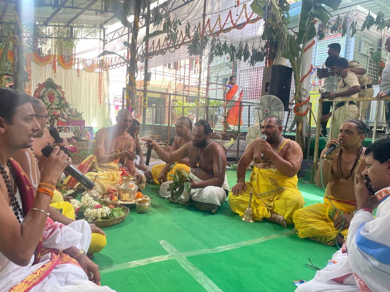 విజయవాడ పున్నమ్మతోటలోని వెంకటేశ్వర స్వామి వారి దేవస్ధానంలో శనివారం నుంచి అష్టబంధన జీర్ణోద్దారణ మహా సంప్రోక్ష్లణ కార్యక్రమం ప్రారంభమైంది. ఇందులో భాగంగా సోమవారం ఉదయం9 గంటల నుంచి 12 గంటల వరకు నవగ్రహారాధన, నవగ్రహ మఖము, ప్రధాన హోమములు జరిగాయి. భక్తులు అధిక సంఖ్యలో హాజరై కార్యక్రమాన్ని తిలకించారు. సాయంత్రం 6.30 గంటల నుంచి 8.30 గంటల వరకు ఉక్త హోమములు, కుంభారాధనలు, అభిమంత్రణములు వైభవంగా జరిగాయి. ఆలయ అధికారులు మల్లికార్జునరావు, లలిత, ఆలయ ప్రధాన అర్చకులు మురళీకృష్ణ, శశికిరణ్, ఆనంద్ భక్తులు వేణు, విజయకుమార్, ప్రసాద్ రెడ్డి, న్యాయవాదులు ప్రసాద్ వెంకటేశ్వరరావు, ఏడుకొండలు, ట్రాన్స్ పోర్టు కంట్రాక్టరు వెన్న నారాయణరావు, వేదపండితులు పాల్గొన్నారు.