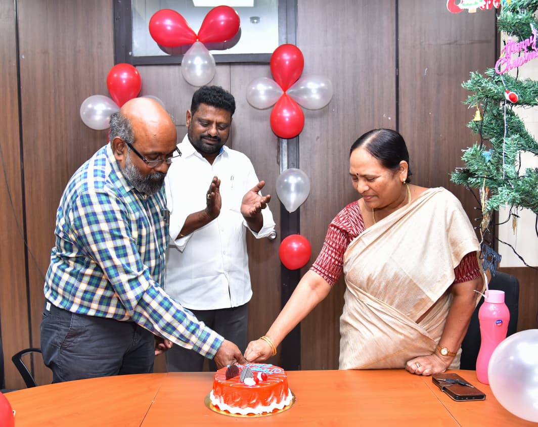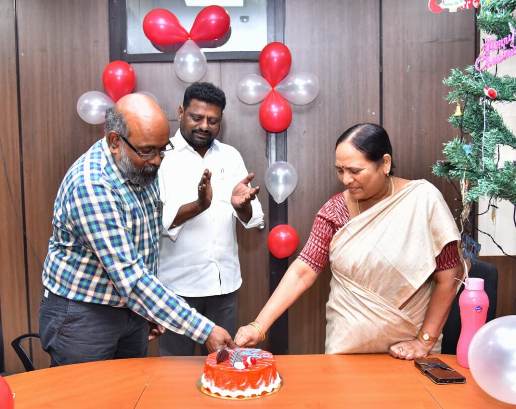 స్థానిక ఎన్టీఆర్ అడ్మినిస్ట్రేటివ్ బ్లాక్ రెండవ అంతస్థులో గల సమాచార పౌర సంబంధాల శాఖ కమిషనరేట్ కార్యాలయంలో శుక్రవారం సెమీ క్రిస్మస్ వేడుకలు ఘనంగా నిర్వహించారు. ఈ కార్యక్రమంలో అధికారులు, ఉద్యోగులు ఉత్సాహంగా పాల్గొని సెమీ క్రిస్మస్ పండుగ వేడుకలను ఘనంగా నిర్వహించారు. ఈ కార్యక్రమానికి సమాచార శాఖ అడిషనల్ డైరెక్టర్ శ్రీమతి ఎల్. స్వర్ణలత, జాయింట్ డైరెక్టర్ పి. కిరణ్ కుమార్ ముఖ్య అతిథులుగా హాజరయ్యారు. ఈ సందర్భంగా అడిషనల్ డైరెక్టర్ ఎల్. స్వర్ణలత మాట్లాడుతూ ప్రపంచవ్యాప్తంగా జరుపుకునే పండుగ క్రిస్మస్ అని అన్నారు. క్రీస్తు బోధనలు ప్రతి ఒక్కరికీ అనుసరణీయం తెలిపారు. ఉద్యోగులకు క్రిస్మస్ పండుగ శుభాకాంక్షలు తెలియజేస్తూ, ప్రేమ, శాంతి, సౌభ్రాతృత్వం వంటి విలువలను క్రిస్మస్ సందేశం ప్రతి ఒక్కరికీ గుర్తుచేస్తుందని పేర్కొన్నారు. ఉద్యోగుల మధ్య ఐక్యత, పరస్పర గౌరవం మరింత బలపడేలా ఇటువంటి వేడుకలు దోహదపడతాయని తెలిపారు. జాయింట్ డైరెక్టర్ పి. కిరణ్ కుమార్ మాట్లాడుతూ క్రిస్మస్ అంటేనే శాంతి, సమాధానాలకు నిదర్శనం అని అన్నారు. ప్రపంచ ఐకమత్యానికి క్రీస్తు బోధనలు అనుసరణీయమన్నారు. క్రిస్మస్ పండుగ అంటేనే ప్రేమ, శాంతి, సౌభ్రాతృత్వం, మానవత్వానికి ప్రతీకగా నిలుస్తుందన్నారు. కార్యక్రమంలో శాఖ ఉద్యోగులు ఉత్సాహంగా పాల్గొని క్రిస్మస్ సందేశాలు, శుభాకాంక్షలు పరస్పరం పంచుకున్నారు. ఈ సందర్భంగా ప్రత్యేక ప్రార్థనలు, కేక్ కటింగ్ కార్యక్రమాన్ని నిర్వహించారు. కార్యక్రమంలో డిప్యూటీ డైరెక్టర్లు బి. పూర్ణచంద్రరావు, పి. వెంకట్రాజు గౌడ్, డి. రమేష్, అసిస్టెంట్ డైరెక్టర్లు పి. రాజశేఖర్, ఏఎస్ వీరభద్రరావు, తిరుపాలయ్య, ఎస్ వీ మోహనరావు, ఏవో పి. సుదర్శనరావు, జేఈవో నాగరాజు, పీఆర్వోలు, సూపరిండెంట్లు, ఉద్యోగులు తదితరలు పాల్గొన్నారు.